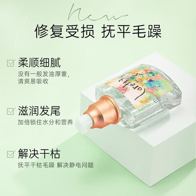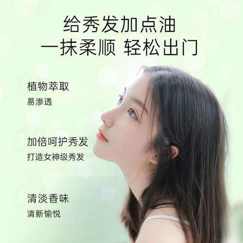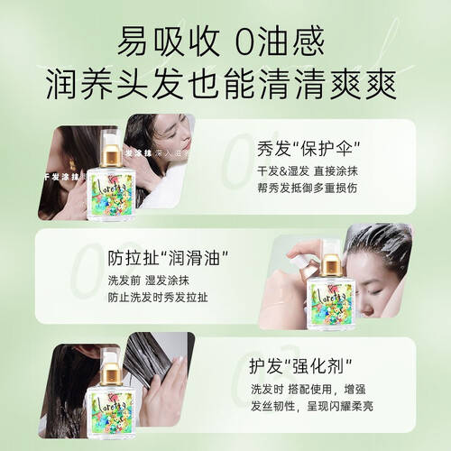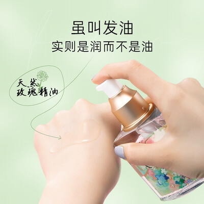 精油质地却不油腻,小分子结构更易被发丝吸收,轻盈不厚重,秀发全天清爽,不油不腻。玫瑰精油滋养发丝,令秀发顺滑,一梳到底。