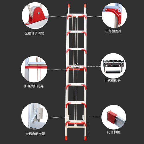 直梯配备有耐磨升降滑轮,转动顺畅不易卡顿,即便单人也能轻松完成梯子伸缩,不费力气更加省心。