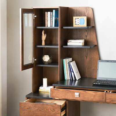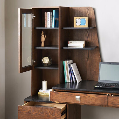 采用进口水曲柳制作,木材坚硬,使用寿命较长;可伸缩书桌,可左右安装,合理运用每一寸空间;精致多抽屉储物空间,美观实用。