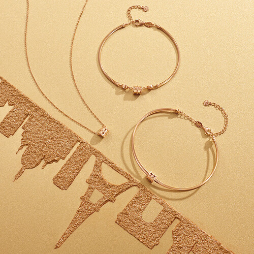六福珠宝的这款K金项链,整体设计简约又不乏个性,搭配上玫瑰金的颜色,时尚显眼,更能彰显您的魅力。