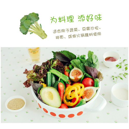 选用白芝麻原料,使用蔬菜豆腐等料理,香味更浓郁。深度烘煎工艺,让味道更醇厚香浓,适用于不同年龄人群食用。