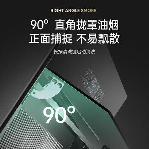 升级90度开合设计,拢烟更广,排烟更快。变频瞬吸技术,爆炒油烟一键快速吸除。升级加大风轮结构,除烟更低噪。
