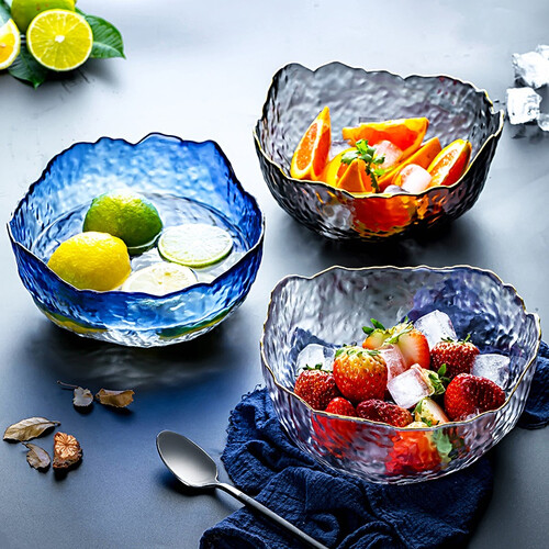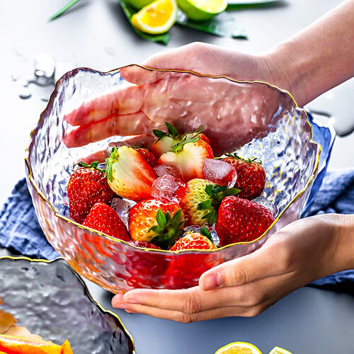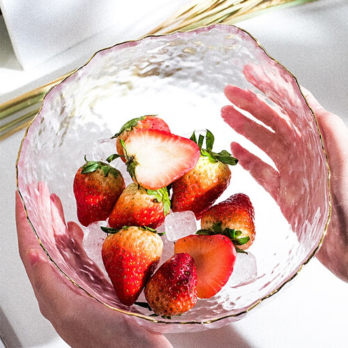 摩登主妇金边锤纹爱心玻璃沙拉碗