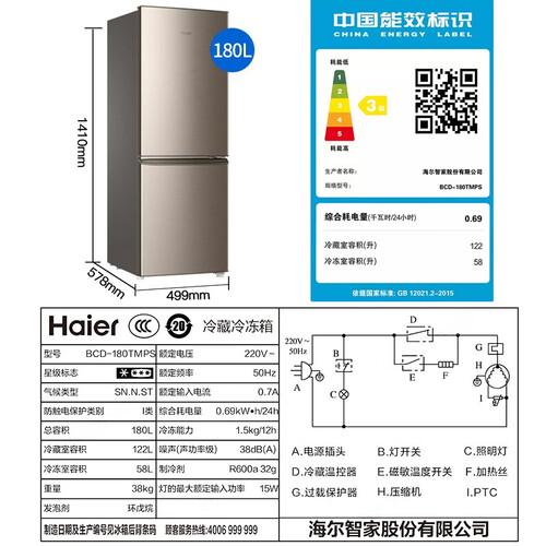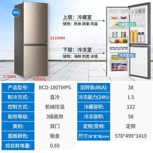内置原厂压缩机冻力十足可以迅速冻透食物,又采用防震设计,≤40分贝静音运行,不扰生活更贴心。更有三级能效环保节能更省心。