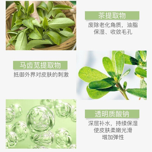 富含茶鲜精粹,促进肌肤水油平衡,从此摆脱大油田。温润无油质地对待油性肌肤更友善,可以迅速吸收有效成分。