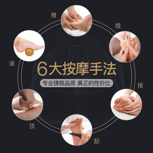 内置指压、滚轮、刮痧、顶压、按揉、推拿六种按摩手法,将足部划分为5段按摩,刺激穴位以及反射区。还能温感热敷,祛湿驱寒。