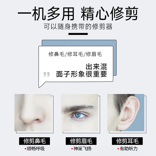 一机多用,可用于鼻毛胡须的造型,操作简单,精准修剪;笔形的设计,方便携带,小巧方便,多角度剃须,打造魅力造型。