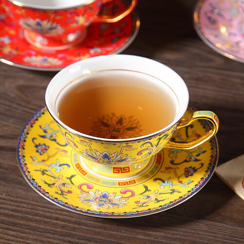 心饰园 珐琅彩中式骨瓷咖啡杯