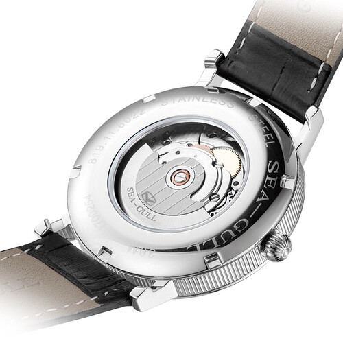 采用316L精钢表带,耐腐蚀能力强悍,可轻松延长佩戴寿命。搭配背透型表背,将机械运动轨迹充分展现。