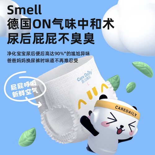 采用德国ON气味中和技术,能够减少尿液的味道,长久穿着气味也不难闻。一拉即穿,一撕即脱的设计,专为宝宝学步期打造。
