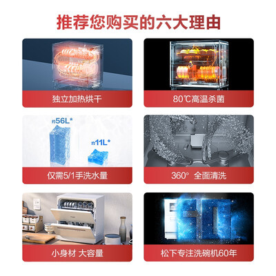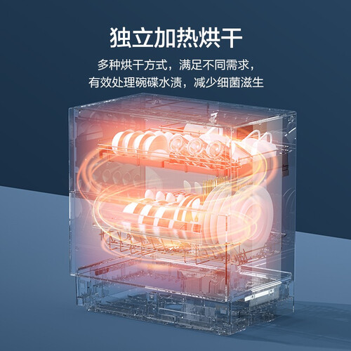 这款家用台式免安装洗碗机,轻盈身材,使用方便。搭载加热烘干模式,比松风烘干、余温烘干效效果更强,效率更高。