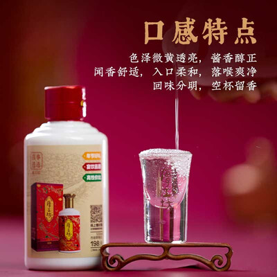 酒体清雅柔和,缓缓地滑入喉咙之间,迸发出醇香诱人的气息。酒液回味甘甜,入口无浓烈的辛辣感,使人身心愉悦。