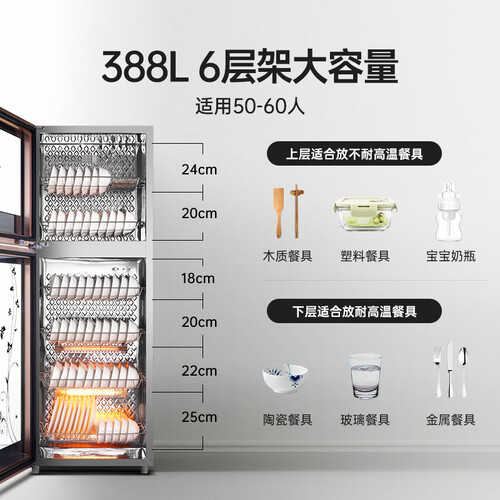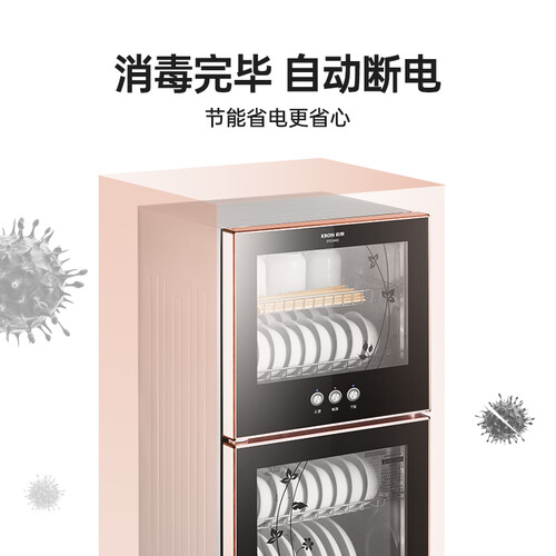 琴键式按键设计,调控更加简单,一键调节省时间。上下两室独立操控,餐具可分类消毒,提升了消毒效果。