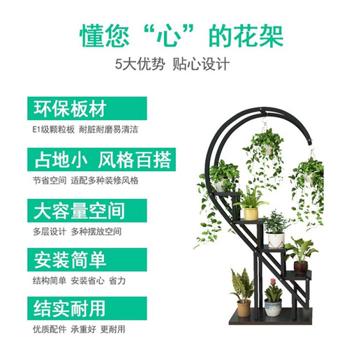 多层设计增加了花架的置物空间,轻松收纳更多的花卉盆栽。配备优质的五金配件,使钢架更加稳定,安全放心。
