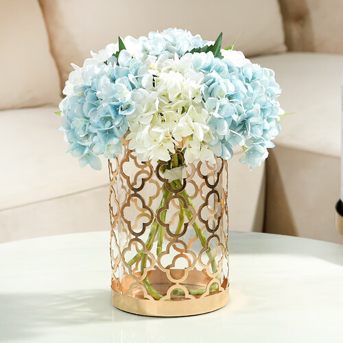 选用通透的玻璃材质,搭配金属镂空花纹点缀,丰富了整体的视觉层次感,有助提升居家格调与档次。
