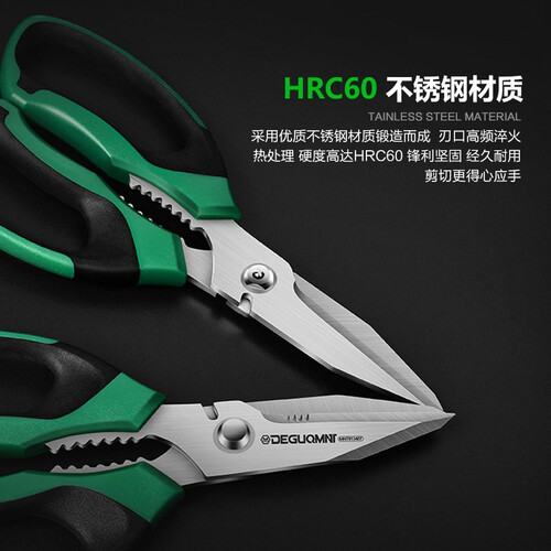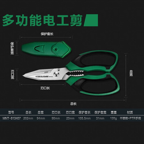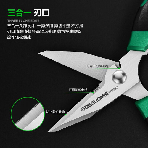 这款多功能的剪刀,在剪刀口采用了三合一的设计,剪切平整不会打滑。工程塑料材质的防滑手柄和保护套,保证作业的安全性。