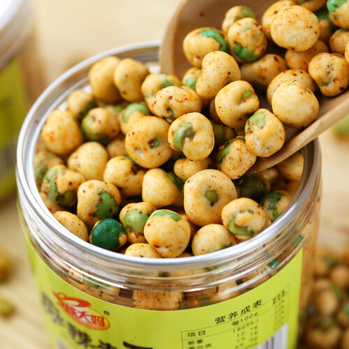 颗粒均匀饱满的青豆,酥脆的口感,麻辣的口味,越嚼越香,好吃到停不下来。