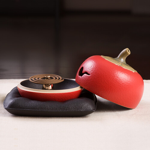 炉身经1230度高温煅烧而成,再经手工喷釉处理,色泽鲜艳耐看。提手设计成柿蒂造型,造型美观且寓意美好。