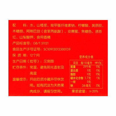 精选饱满山楂制作,酸甜适度,帮助开胃解油腻。结合瓶装包装设计,外出携带更加方便,可以满足不同场所饮料。