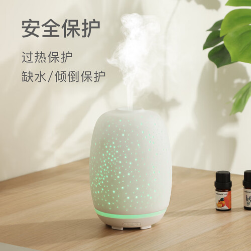 星空造型香薰机,带有星空灯效,让夜晚更加浪漫。适合用来给女朋友送礼,实用又有档次。使用陶瓷外壳,古香古色。