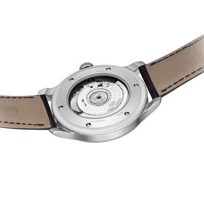 柔软皮质表带,佩戴亲肤透气,结合蝴蝶扣开合取戴方便。拥有全透明的底盖,可以看见每一下走动,展现机械的运转之美。
