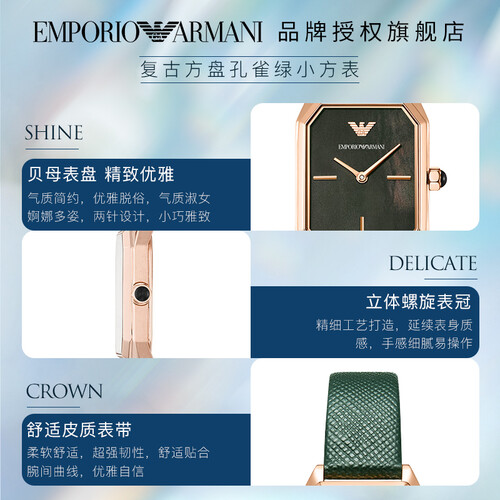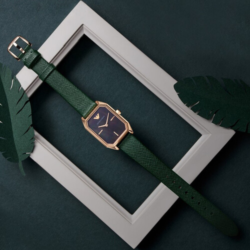 复古方盘构造,经典耐看,配绿色皮革表带,柔软亲肤之余形成巧妙撞色,丰富视觉魅力。采用矿物质玻璃镜面,坚韧耐磨防刮花。