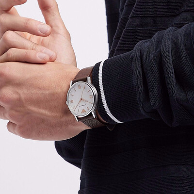 简洁月白色表盘搭配古罗马数字刻度,尽显精致复古韵味。采用红棕色皮质表带,复古摩登,柔软舒适,贴合腕间曲线。