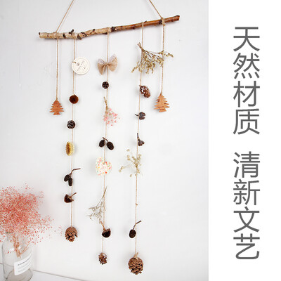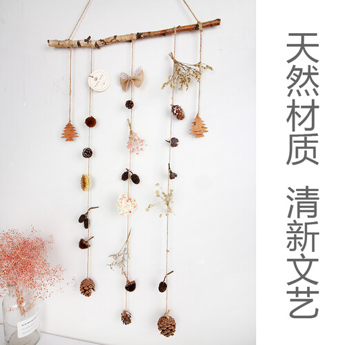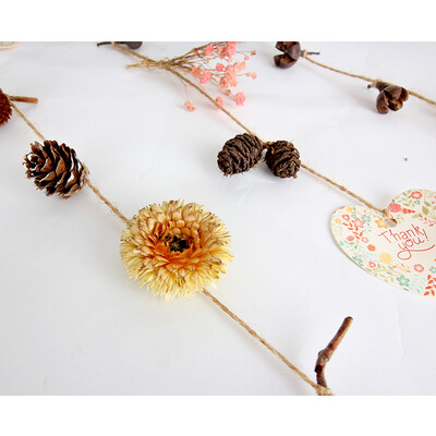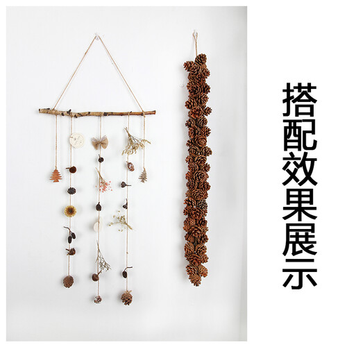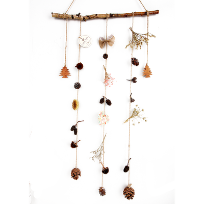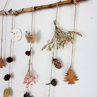 选用天然树枝,纹理自然美观,令人爱不释手;干花与木质挂坠的分布错落有致,富有层次感,为整体设计添墨加彩。