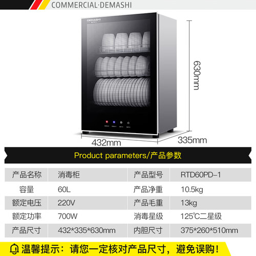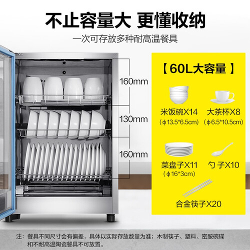 可视化的玻璃窗设计,便于观察内部餐具放置情况。而不锈钢制成的内胆兼具防爆性和抗冲击力,有效延长了它的使用寿命。