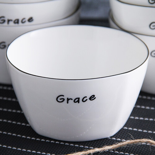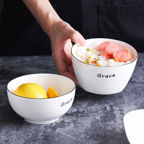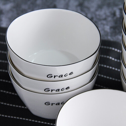 特色法式黑线设计,体现简约典雅的装饰风格。餐碗表面绘制简单的英文图案,更显别致。