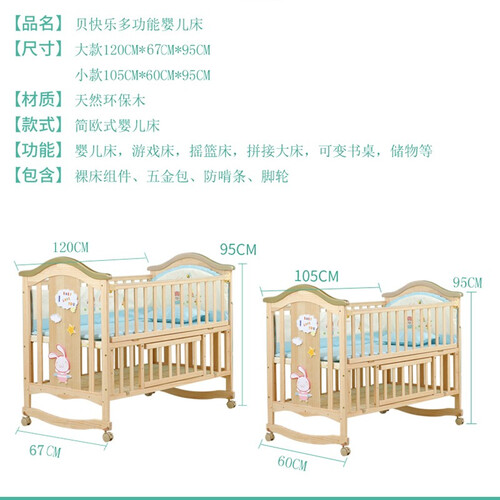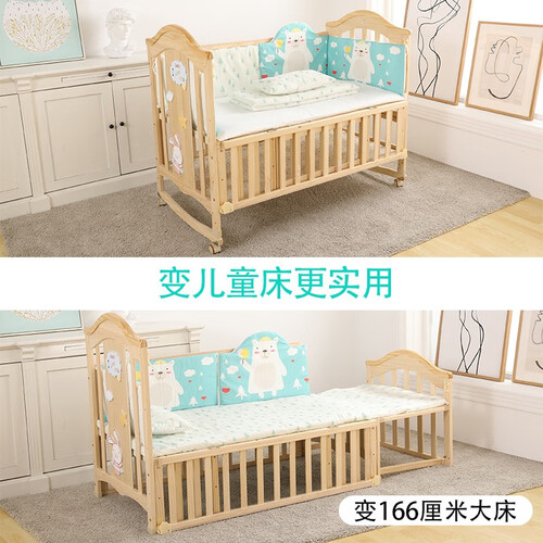 外观简洁又不失可爱,表面光滑无毛刺,床板六档可调,无缝拼接大床,宝宝夜间啼哭方便照顾。