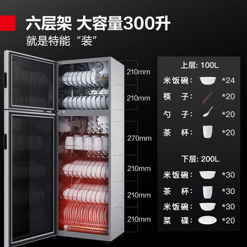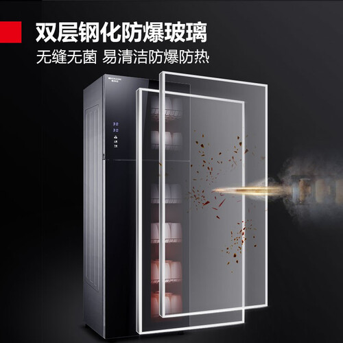 不锈钢箱体加隔热层,箱内外空气不流通,不会二次污染。高温杀菌,强烈杀死细菌,没有残留。双开门,收纳取用都容易。