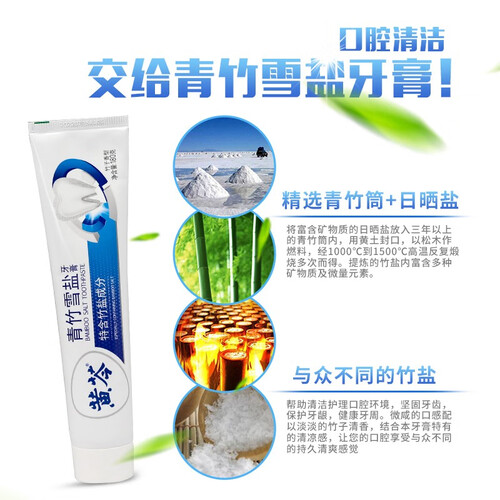 精选青竹筒与日晒盐提取营养成分,具有多种矿物质与微量元素保护牙齿。清爽的竹子香型,去除口腔异味,口感自然淡雅。