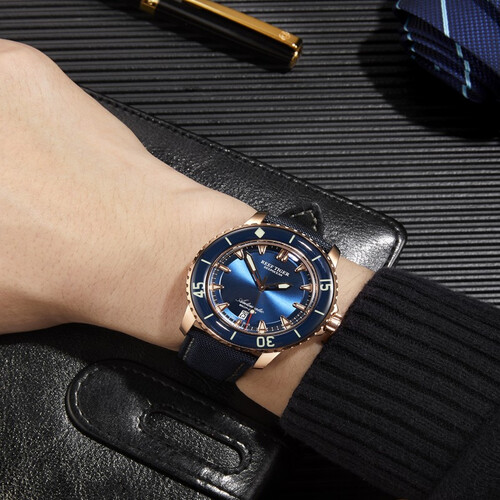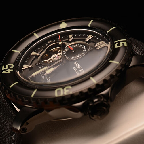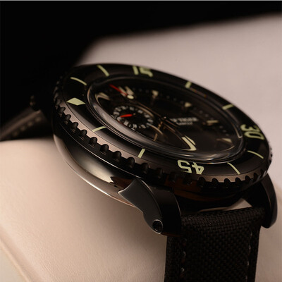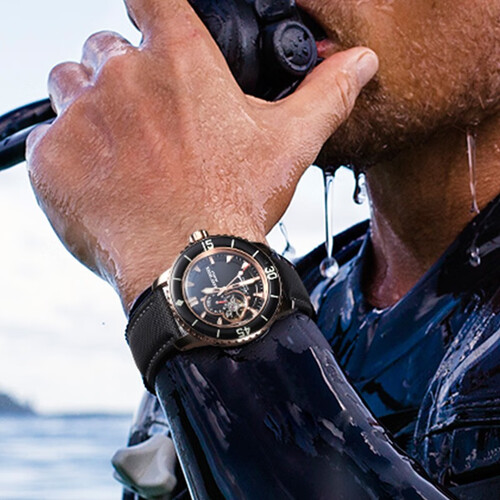 表带选用精钢材质打造,抗磨耐刮耐腐蚀,延长手表佩戴寿命。拥有纯黑色表盘,与光影效果巧妙配合,成为时尚潮搭单品。