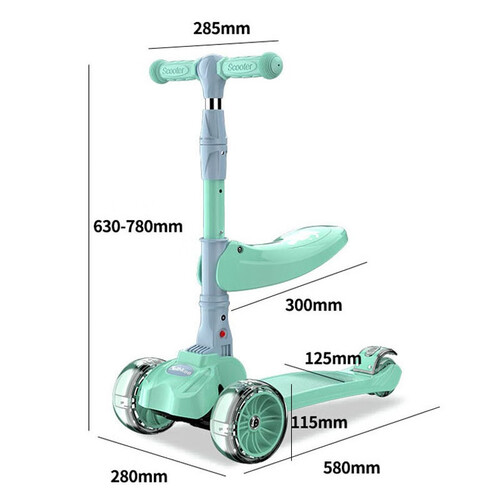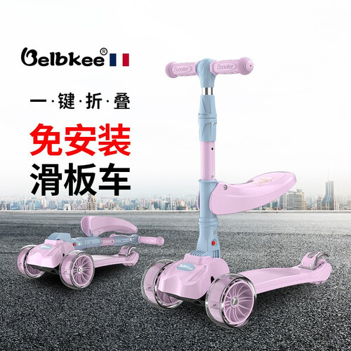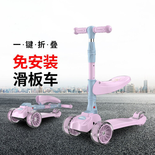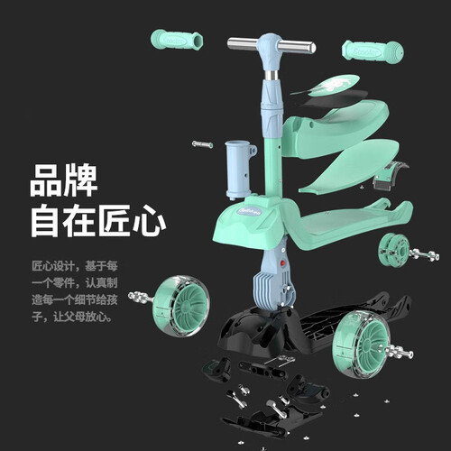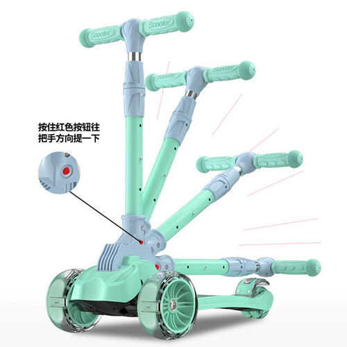 这款滑板车一秒即可折叠,快速收纳,外出携带更加方便。三档高度可调节,能适应不同年龄段宝宝骑行,让孩子可以从小玩到大。