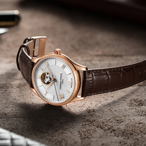 表壳采用不锈钢PVD离子镀玫瑰金,视感奢美,凸显高贵品质。透视窗的设计,随时随地欣赏机芯运转之美。