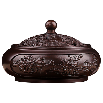 精选高品质黄铜锻造而成,质地坚固厚重,经久耐用不变形。炉身表面采用传统手工雕刻装饰,花鸟图案生动逼真,颇具观赏效果。