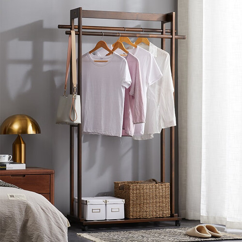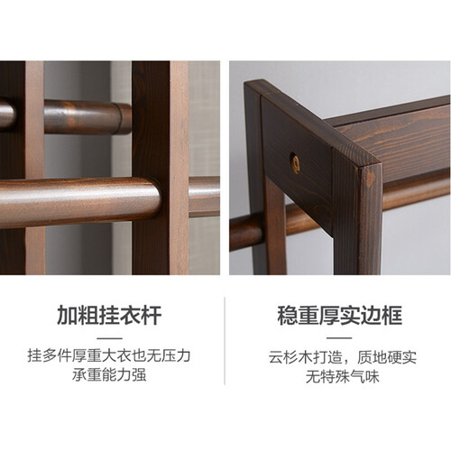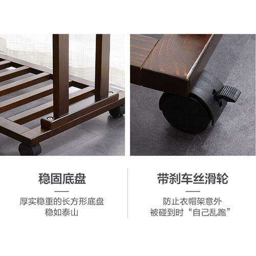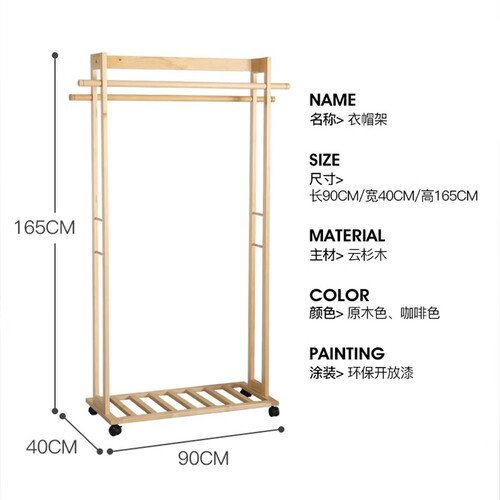 适合不同户型使用的大容量衣帽架,云杉木打造的厚实边框,质地坚硬无异味,底部贴心滑轮可自由旋转,使用灵活方便。