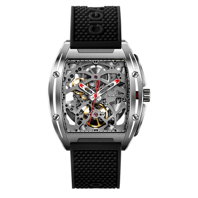 蓝宝石水晶玻璃材质,更加清晰,给人大气尊贵感。方形表盘设计,彰显理性感。表盘内多种齿轮的装饰,更是别有风味。