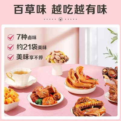 七种风味的21包卤制好味,征服肉食控味蕾。浓郁的酱汁包裹食材,肉食更加的入味鲜香。荤素搭配,助兴假期宅家的追剧时光。