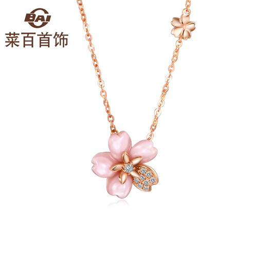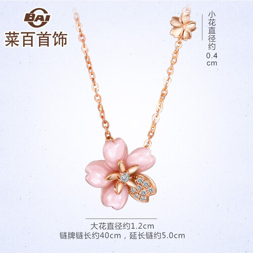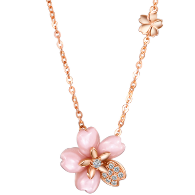 粉嫩的樱花设计,上面镶嵌多颗小钻石,造型别致好看。采用可延长尾链的设计,随心调节,百搭各种服饰。