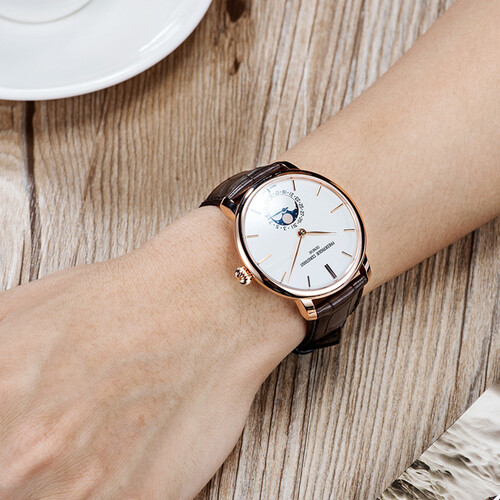 透明底盖设计,清晰看到内部机械构造,让你感受时间的韵律。采用镀玫瑰金色不锈钢表圈,加上神秘月相,打造炫酷优雅双重风格。