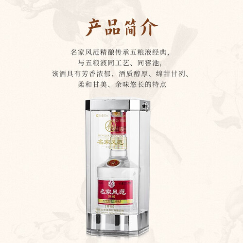 甄选优质原料制成,酒液透明橙澈,口感绵甜尾净,香气优雅,回味无穷。防滑瓶底设计,放置平稳,不易倾倒。