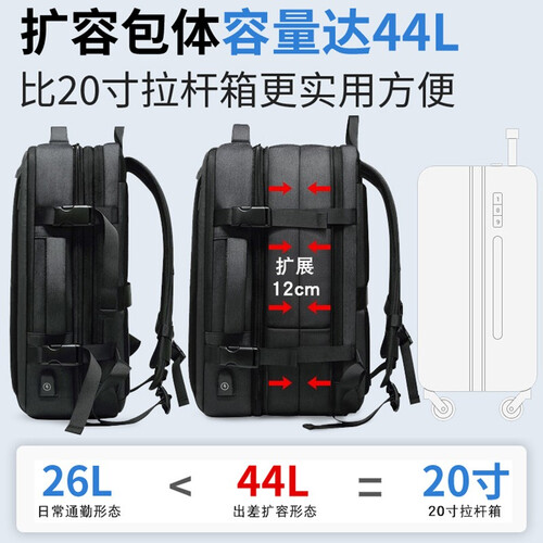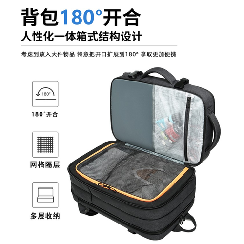 实用的扩容包体设计,内部容量高达44L,存储更随心。采用一体式箱体结构,包身支持180°开合,拿取便捷。