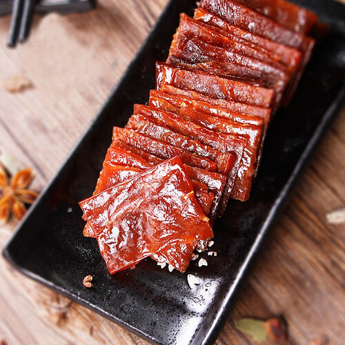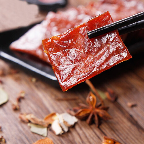 精选猪后腿肉,搭配鲜香的蜜汁酱,慢火烘焙出香甜好味道,鲜嫩多汁,吃上一口,唇间迸发出猪肉脯特有的咸甜味道。