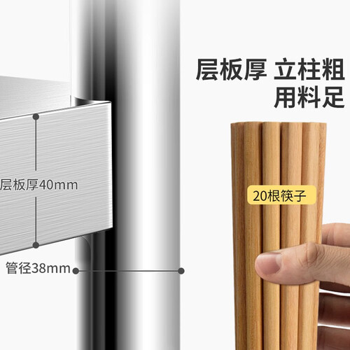 应用贯穿螺丝设计,增强置物架的稳定性,底部采用方形钢管固定增加承重力。选用4次折边工艺,减少误伤,做你的暖心厨具。