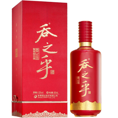 以生态酿酒,酒香幽雅怡人,酒体醇和;红色包装,配以金色祥云低温,十分喜庆,婚宴好选择。