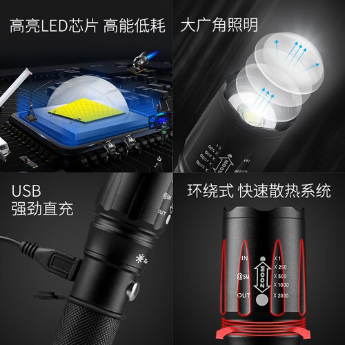 采用了USB快速直充设计,不需要频繁的取出电池,不必担心长时间拆卸电池造成尾盖滑丝,增加了手电筒的使用寿命。