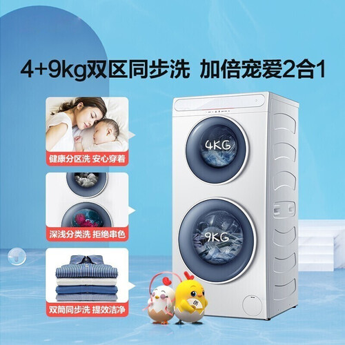 采用双层区域分区洗衣设计,营造独立洗衣空间,满足分类准确护衣效果,避免出现衣物混色或内衣交叉感染,使用更安心。