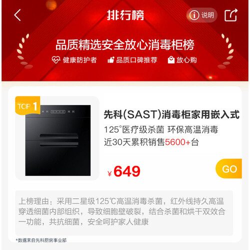 先科大容量消毒柜